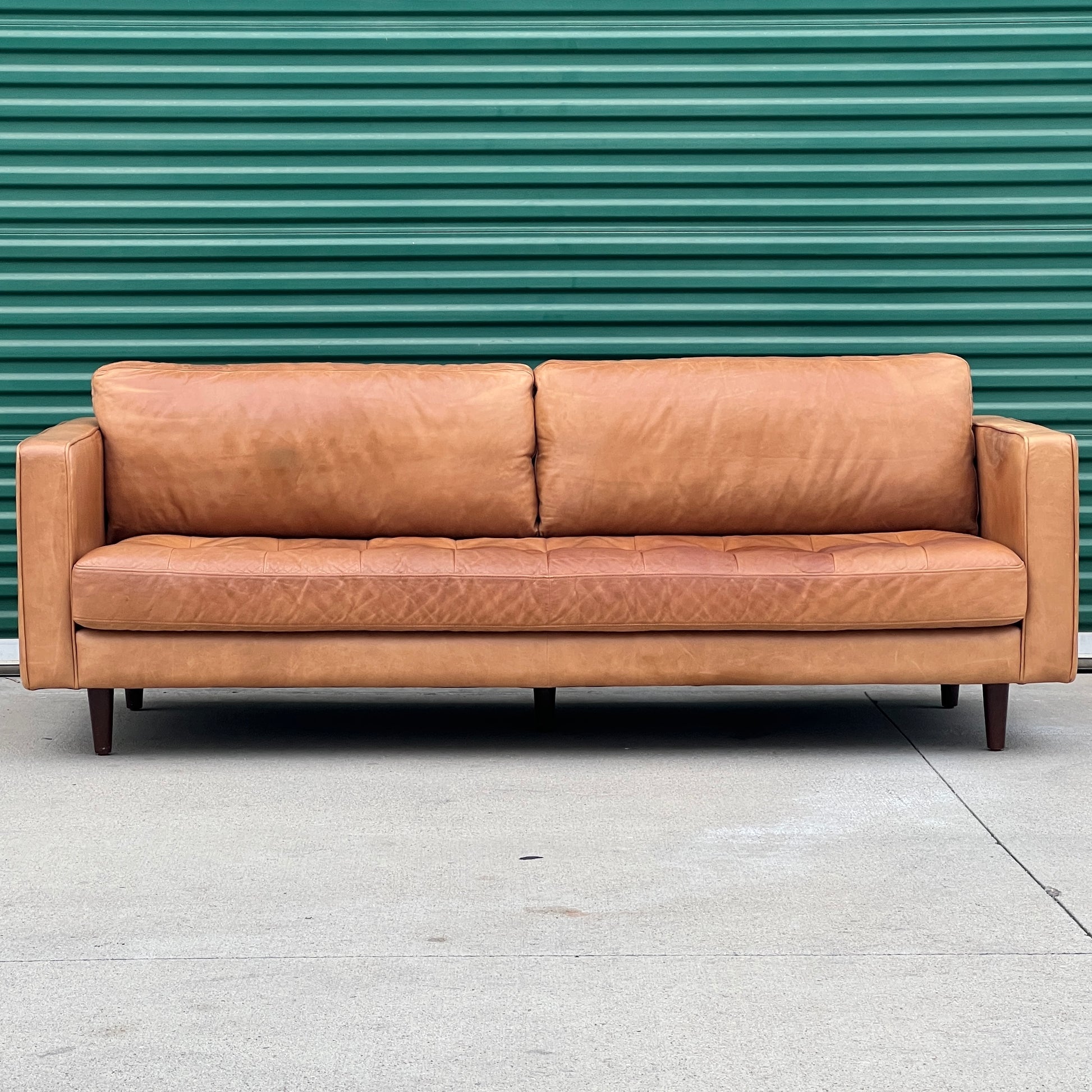 $900 Delivered | HD Buttercup Cognac Leather Tufted Sofa Down Filling